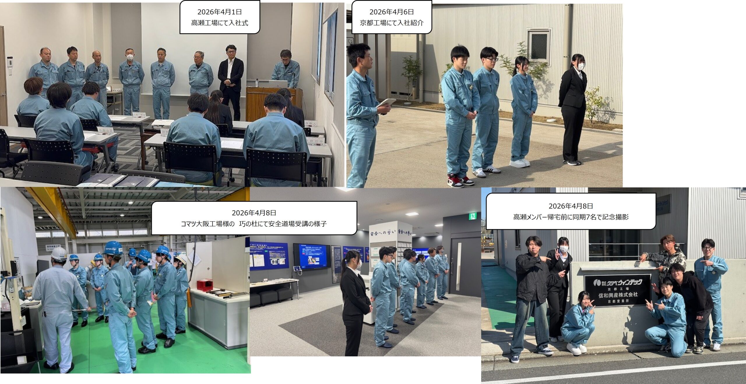 同期としてこれから支え合いながらお互い頑張ろうと京都工場玄関にて記念撮影。